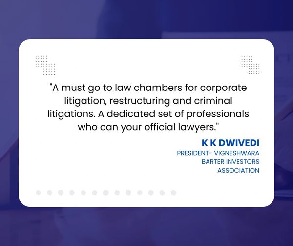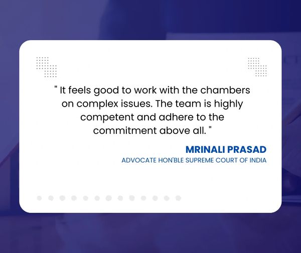 The Bar Council of India does not permit advertising or soliciting by advocates in any form/manner. By accessing this website, you acknowledge and confirm that you are seeking information about the Chambers at your own accord and that there has been no form of inducement by the Chambers. The content of this website is for informational purposes only and should not be interpreted as soliciting or advertising nor should be construed as legal advice. Chambers shall not be liable for consequences of any action taken by relying on the information provided on this website.